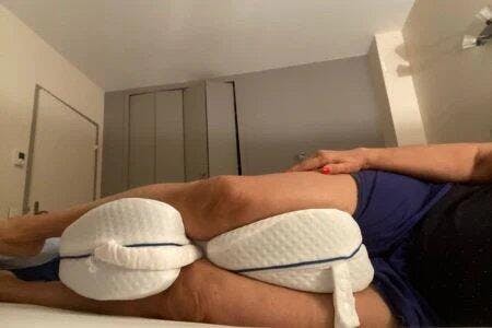 Poduszka między kolana KomfiKnees® pomaga zmniejszyć ból podczas snu.