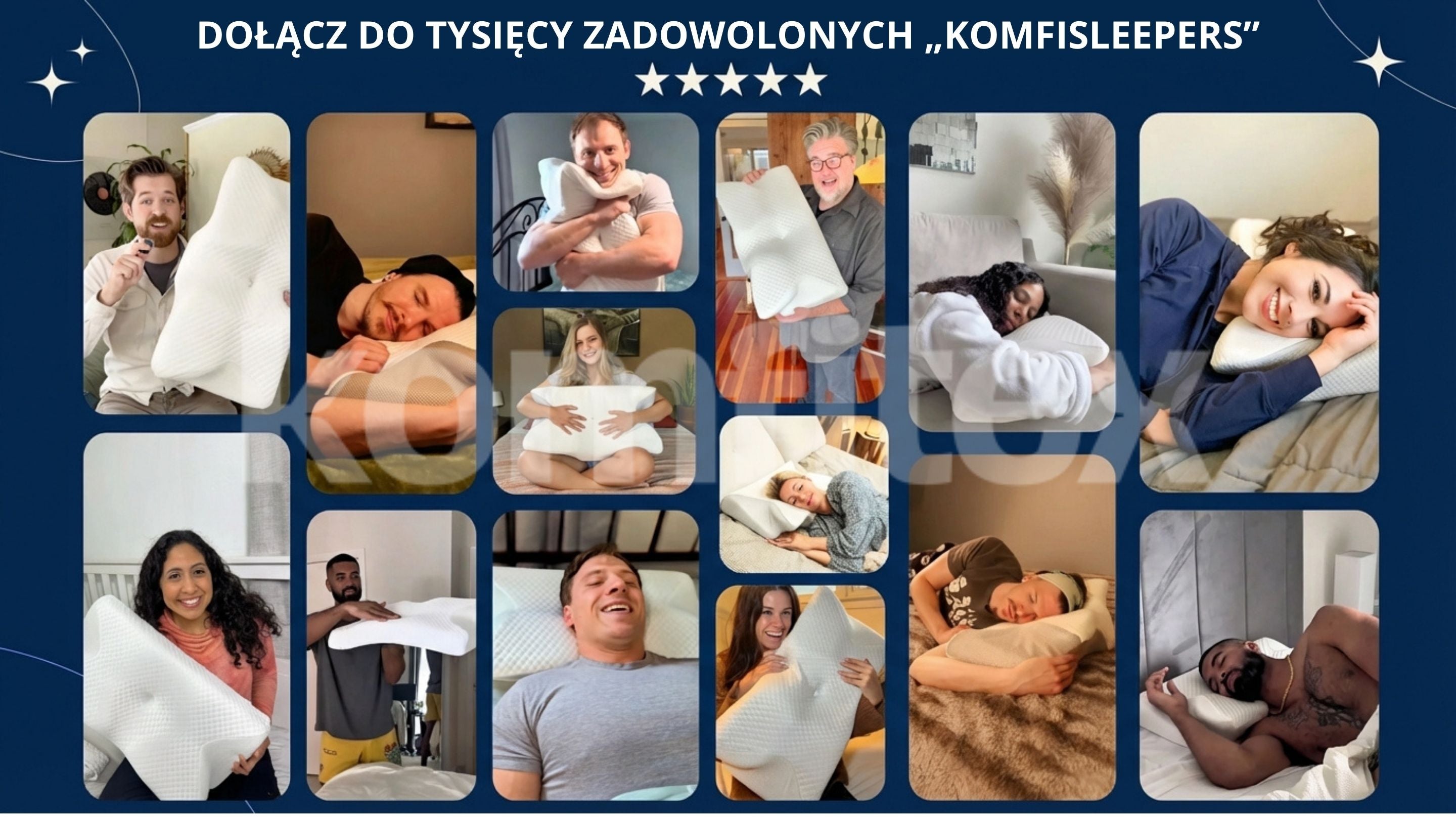 "Odkąd używam KomfiSleep™, moja postawa znacznie się poprawiła, głowa i szyja idealnie podparte, wstaję bez bólu i czuję się wypoczęta każdego dnia."